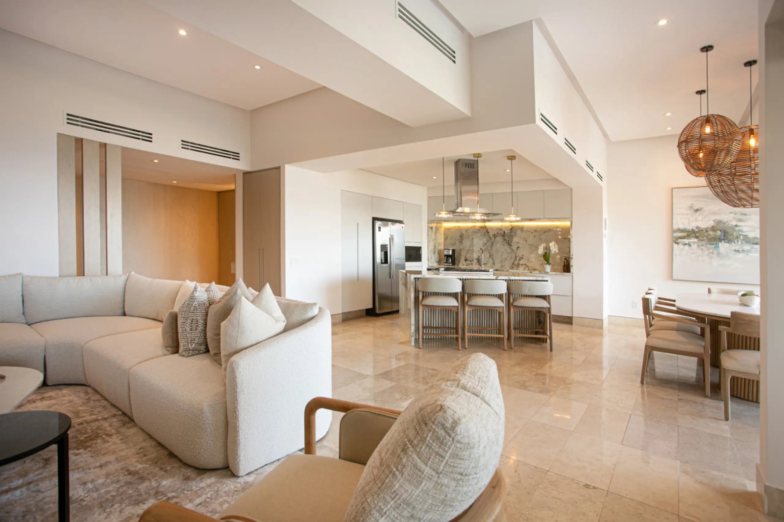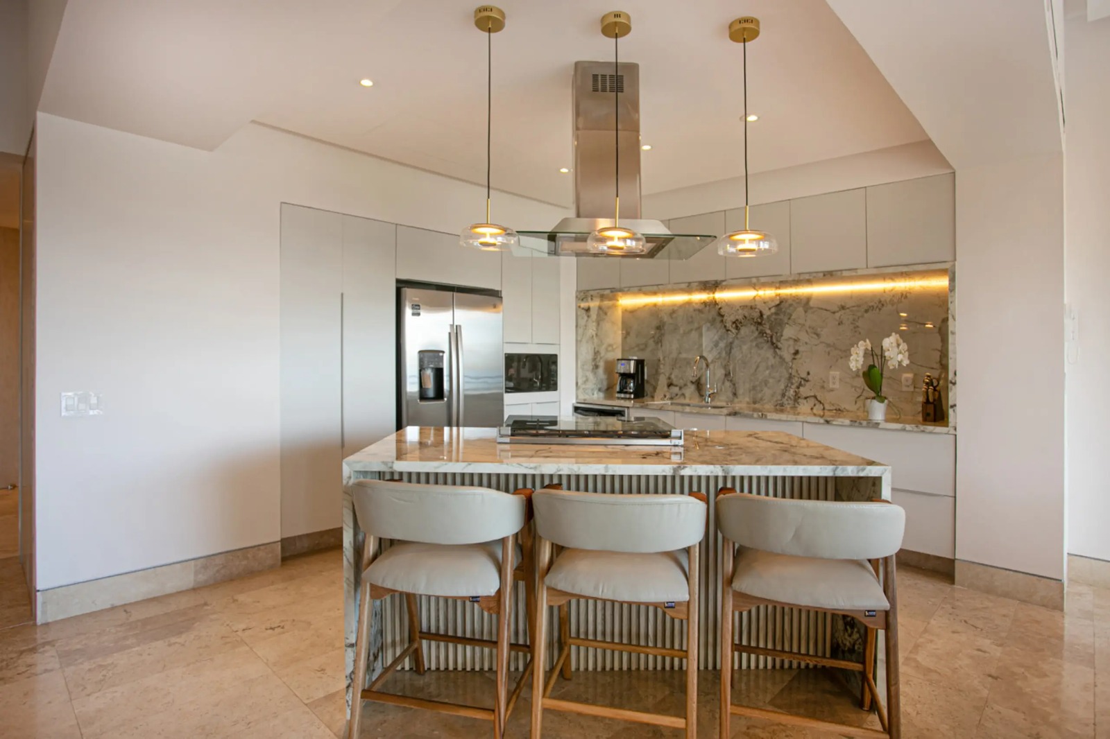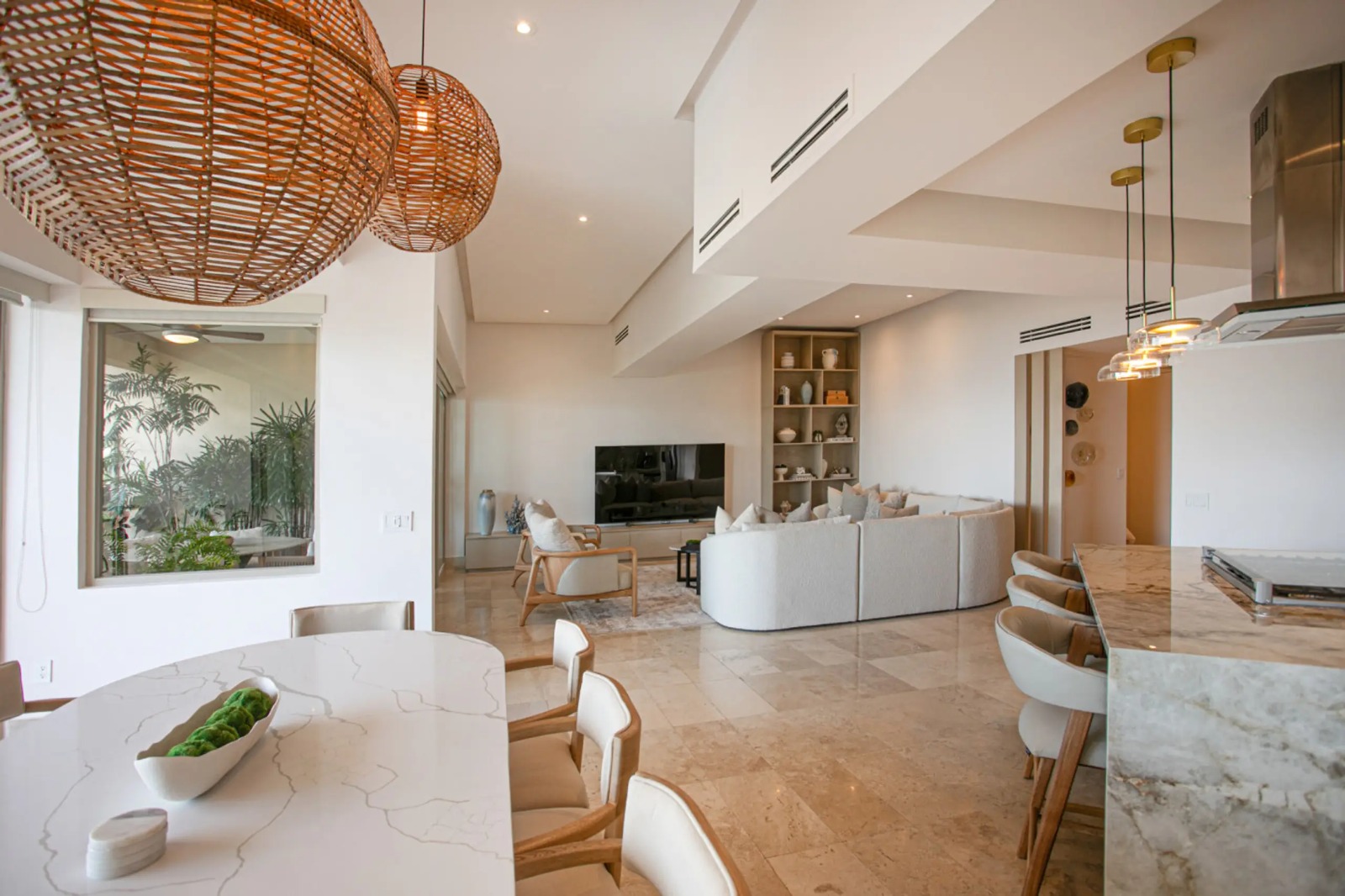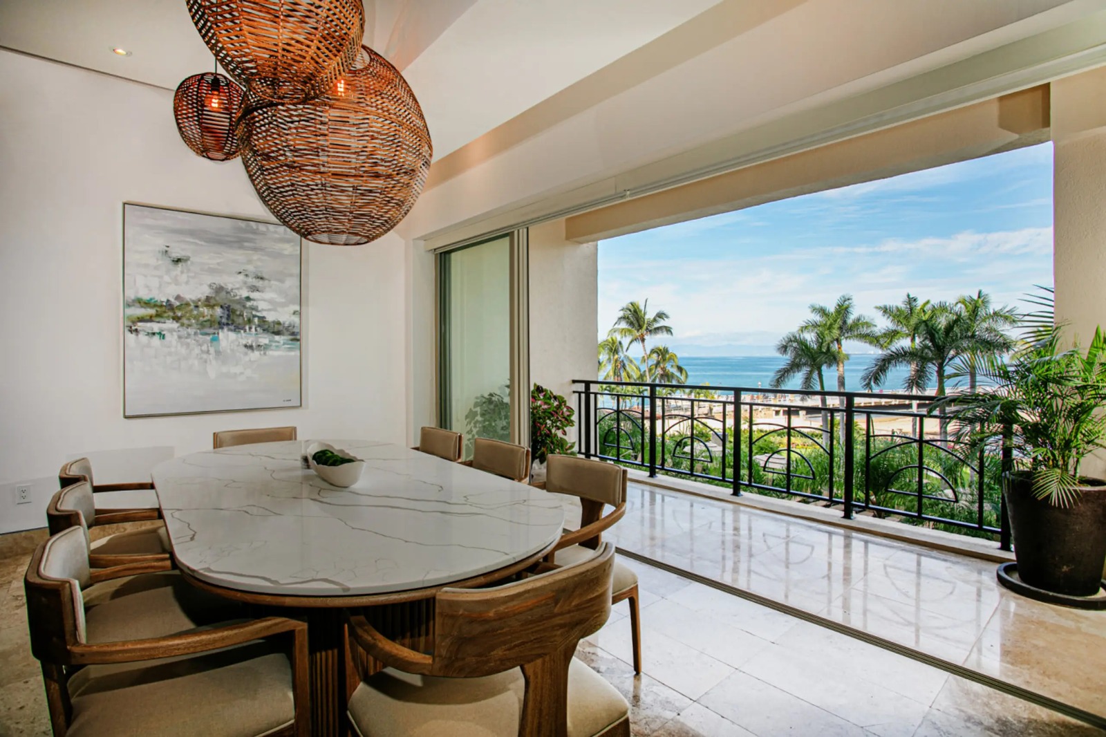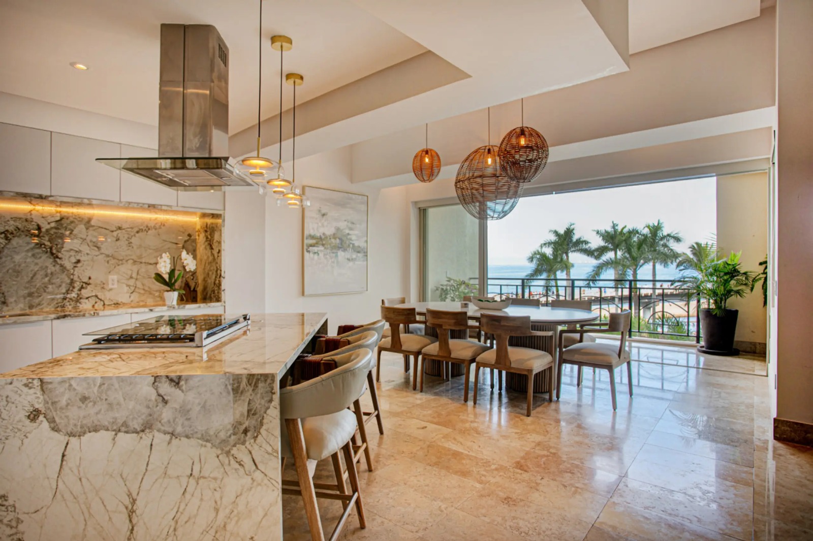 Welcome to Molino de Agua, the premier residence in the Romantic Zone of Puerto Vallarta. This condominium complex redefines beachfront luxury in old town Vallarta and is ideally located where Rio Cuale meets Banderas Bay. Residences Molino de Agua offers unparalleled beachfront luxury in one of Mexico’s destination hot spots. BEACH/POOL FACING VIEWS – Unit 204 occupies the entire 2nd floor of Tower 4 at Molino de Agua and is a mere 100 feet from the beach. This 3BR, 3BA condominium boasts 2 large, staggered balconies offering views of Banderas Bay, Old Town Puerto Vallarta and Los Muertos Beach. This 3,000+ square foot condo has recently undergone a complete renovation, with a new kitchen, bathrooms and all-new furniture.